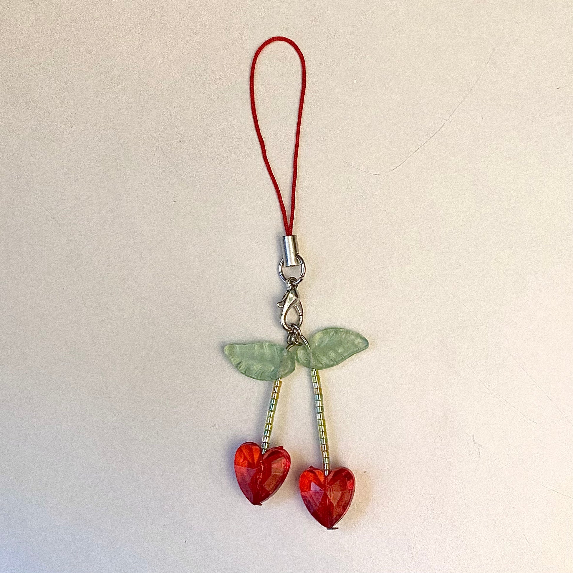 handmade heart cherry key chains/phone charms perfect for valentine’s day 🍒❤️