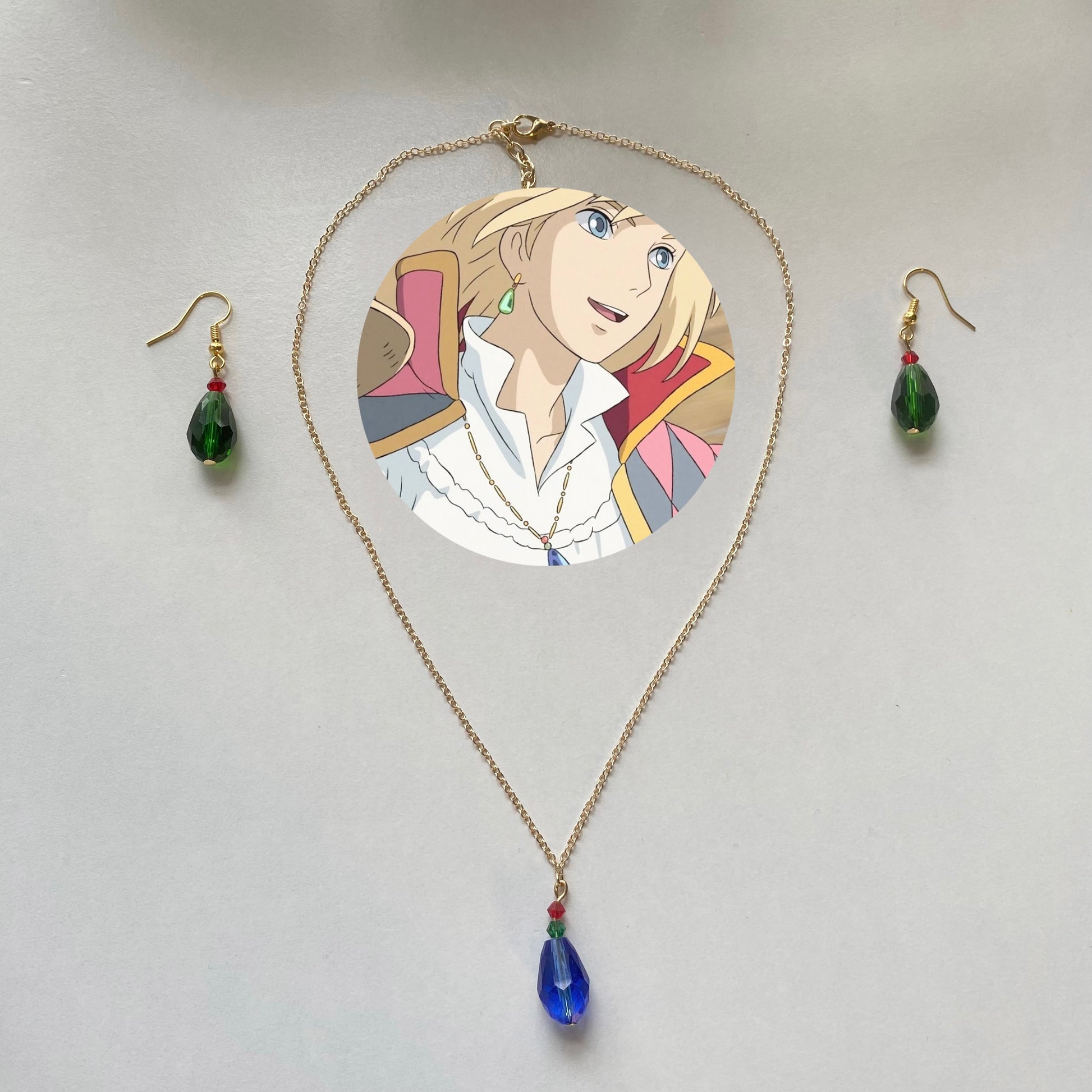 a handmade howl’s moving castle inspired necklace and earrings set-both can be bought separately